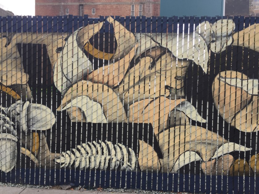 Is it that obvious? I’ve walked by this fence more than 150 times. I took pictures of artwork in October. Yet, it wasn’t until last Friday night, when my friend Audrey was driving me home that I realized, there were letters, there was a name, “The Lot.” How did miss it? When I took the photo, I was too close. When I walked by, I was in motion. Stopped at a traffic light, marveling at the city nightscape, the writing was clear. We often hear, look at the big picture. What does that really mean? Step back, relax and take a different approach. Look for the patterns, look for the disruptions. What does it tell you? This makes me wonder, what things have I missed that were glaringly obvious that I missed because I was either too close, or that I didn’t stop to notice? This week, what can you stop and observe. Pause and ponder a stance diametrically opposed to yours. It doesn’t mean your view changes, it means you see something you haven’t seen before; you see the big picture.
