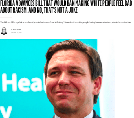 A Florida bill is advancing that will ban public schools and private businesses from inflicting “discomfort” on white people during lessons or training about discrimination. Late last year, my building purchased folding privacy screens that can be put in pace so residents wouldn’t feel uncomfortable with people looking in at events held in the lobby. Note, the building is over 10 years old. Read the rooms.