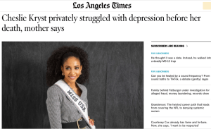 You don’t tell someone with a broken arm to shake it off and do yoga. That doesn’t work for mental health issues either. Yes, healthy life styles are good, blah, blah, blah. But, there are times when people are suffering. It’s only after a suicide we hear, “battling with depression.” You don’t know what is going on with people. Former Miss USA Cheslie Kryst died on 30 January 2022 from an apparent suicide.