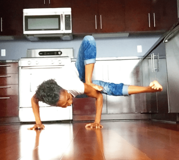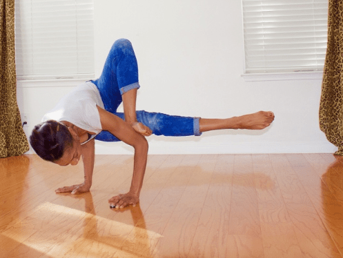 This is grasshopper. My preparation for the class included yin holds for 3 minutes of agnistambhasana (firelog) and gomukhasana (cow face legs) for hip openers and all kinds of twist. Lead up poses were parsva bakasana (side crow) moving into eka pada koundinyasana (flying splits)