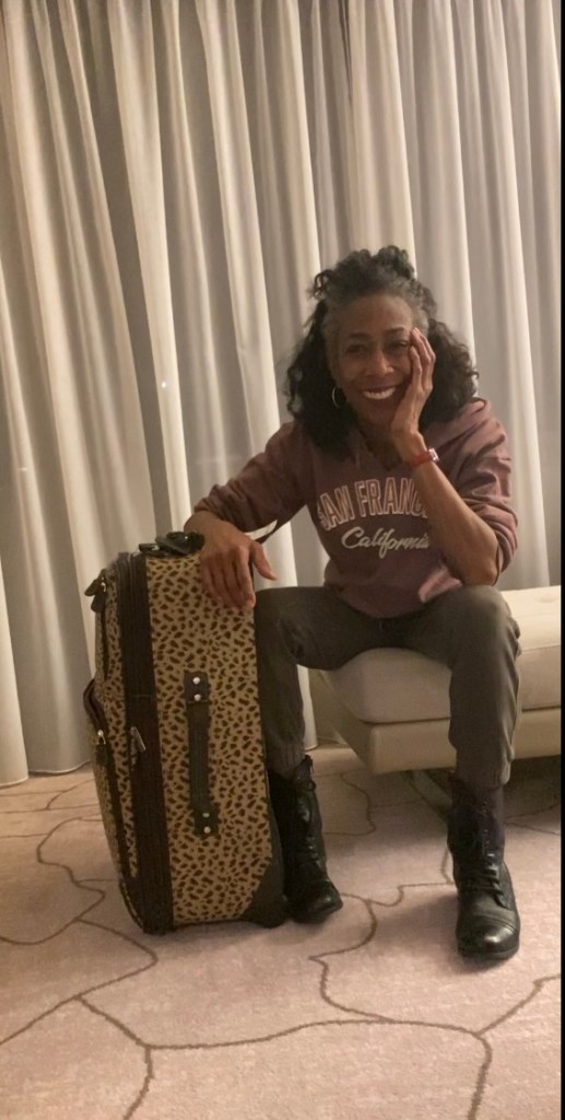 Forty-five minutes later I was headed to the airport. No makeup, hair in an unintentional messy bun and n an outfit that left much to be desired. The craziest thing, I grabbed an impractical jacket, because I felt the coat jacket that would work, would clash with my luggage. Yes, that was the stress induced stupidity. I packed 3 toothbrushes, but nary a comb or hair brush. The messy bun situation stayed that way. The jacket was so bad, I was like a tourist at the San Francisco airport buying a hoodie for warmth and comfort. My brain started to function again. I have a big head, I can’t get hoodies (or most turtle necks over my head), so, I knew enough to borrow scissors from the gift shop to enlarge the neck line.