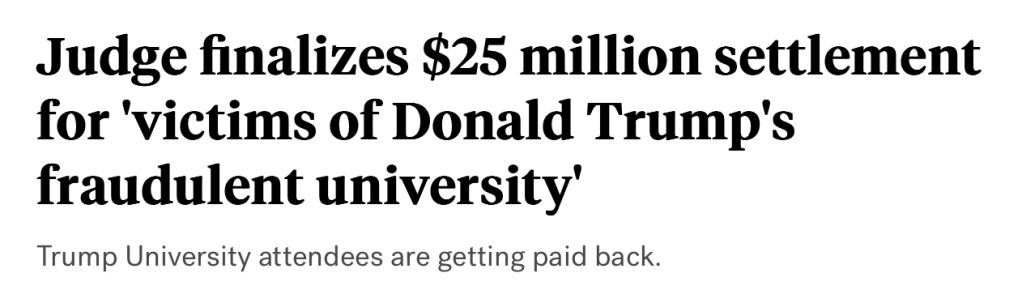 There are numerous items in agenda 47. Like the elimination of the current accreditation system for college and universities. As a member the board of trustees for a computer college, I recently participated in a small portion of this process. Maybe you can tap out of the law enforcement, economic and race, but this policy will tap the US out of higher education. Things can always be better, but the criteria and rigor in place for current accreditation is a marvel. As a reminder, DJT’s Trump University, the real estate training programing, was sued and ended with a $25 million settlement for fraud. Now, the same person with a fraudulent university wants to abolish the current accreditation system for universities. Something in the buttermilk ain’t clean.