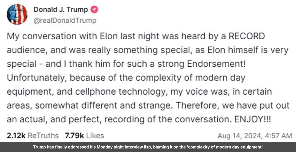 I had almost 3 hours of body work this afternoon and apparently I’m holding stress everywhere. Knotted and shortened muscles and out of alignment limbs. It’s easy to blame the 50 yoga classes in the last 4 weeks, but it is not. That’s has kept things mobile. The cause is the presidential campaign. I don’t understand how it can be so close in the polls with the campaign Trump Campaign of cruelty, anger, rage, lies, mocking and belittling. Is this who we are as a country? Trump can be charismatic. When fact checked, most of what he says is untrue. With the infamous interview with the National Association of Black Journalists, Trump said the 35 minute delay was because of microphones. IT WAS NOT. The delay was because he, Trump, would not agree to live fact checking. Trump, after the interview with Elon Musk and comments that Trump sounded like a racist Daffy Duck he issued this statement along with cleaned up audio.