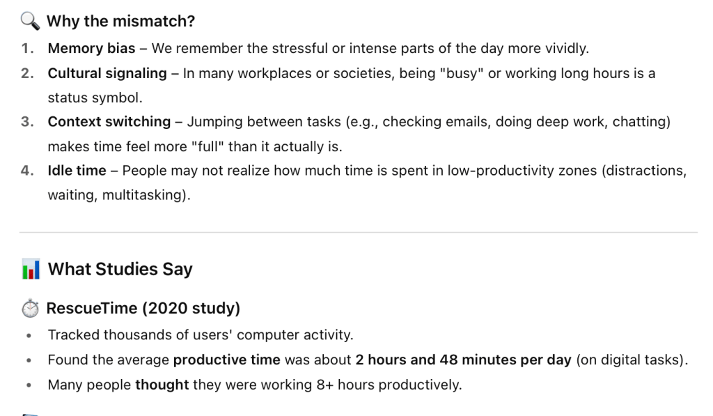 2 From Mildred, this is why people over estimate the amount of time they are working daily.