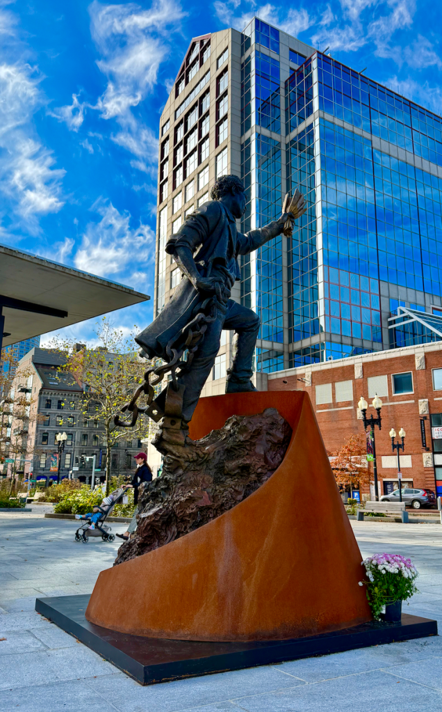 Rose Kennedy Greenway: Temporary installation of Hope Out of Darkness, a bronze sculpture honoring the life and legacy of abolitionist Solomon Northup.