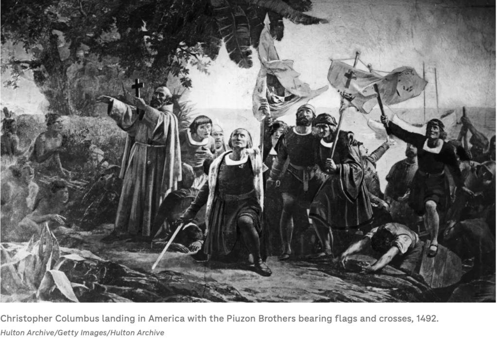 Then there is the rest of the story. Columbus’s cruelty to the Spanish settlers who were colonized on his so called Asian continent to mine gold. He and his brothers used torture, mutilation, whippings, executions, starvation to maintain control. Come to think of it, yes, that would be why any crew member who figured out the ships were’t in Asia, didn’t speak up.